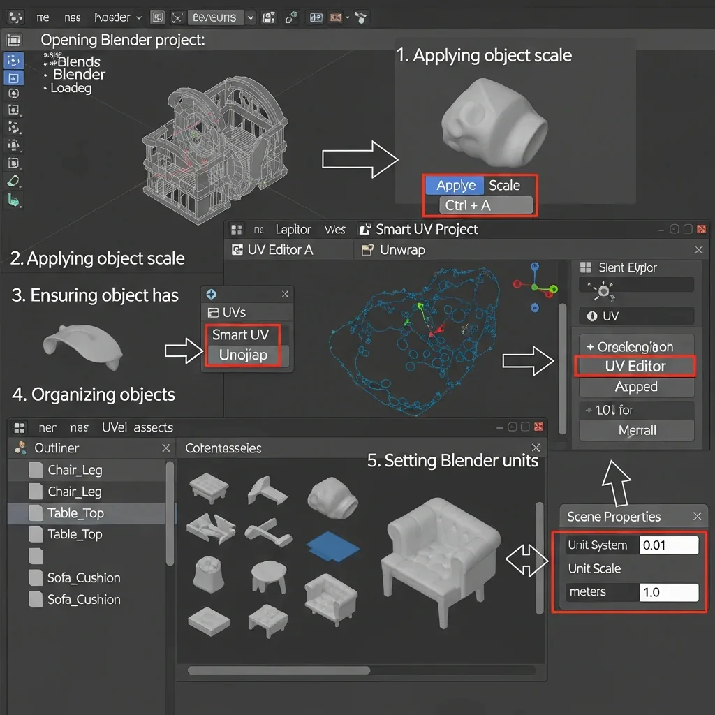 Good scene setup in Blender is the keystone to an efficient UV validation and an automatic texel density pipeline. Without it you’re going to get false readings from automated tools, or your textures are going to stretch, or maybe nobody’s even going to notice those UVs had overlapped. This step mixes getting the tech to work with an explanation of why you’re doing it.