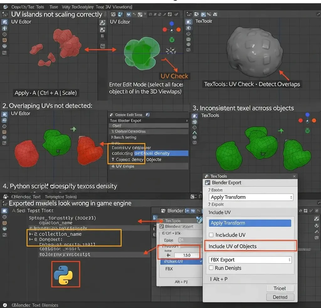 Automate UV validation and texel density in Blender Save time, avoid errors, and get paste consistent. With a well-arranged scene, strategically used add-ons such as TexTools and (optionally) Python scripts for batch editing, you will be able to normalize your assets creation process and never experience the pains from overlapped UVs or varying texel density.