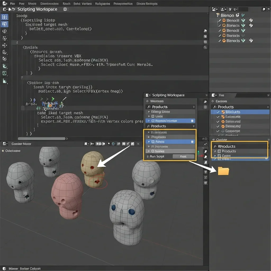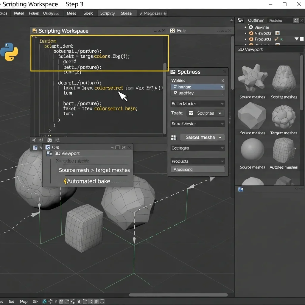 Through this step by step workflow, you can completely automate vertex color baking of many meshes in Blender, and in the process avoid the manual, repetitive, and error prone processes that typically make the production process slow. Since the scene and source material preparations, to Python-based automation of baking, checking the results, and optional use of fills, and batch export of meshes all the steps are made consistent, accurate, and scalable.