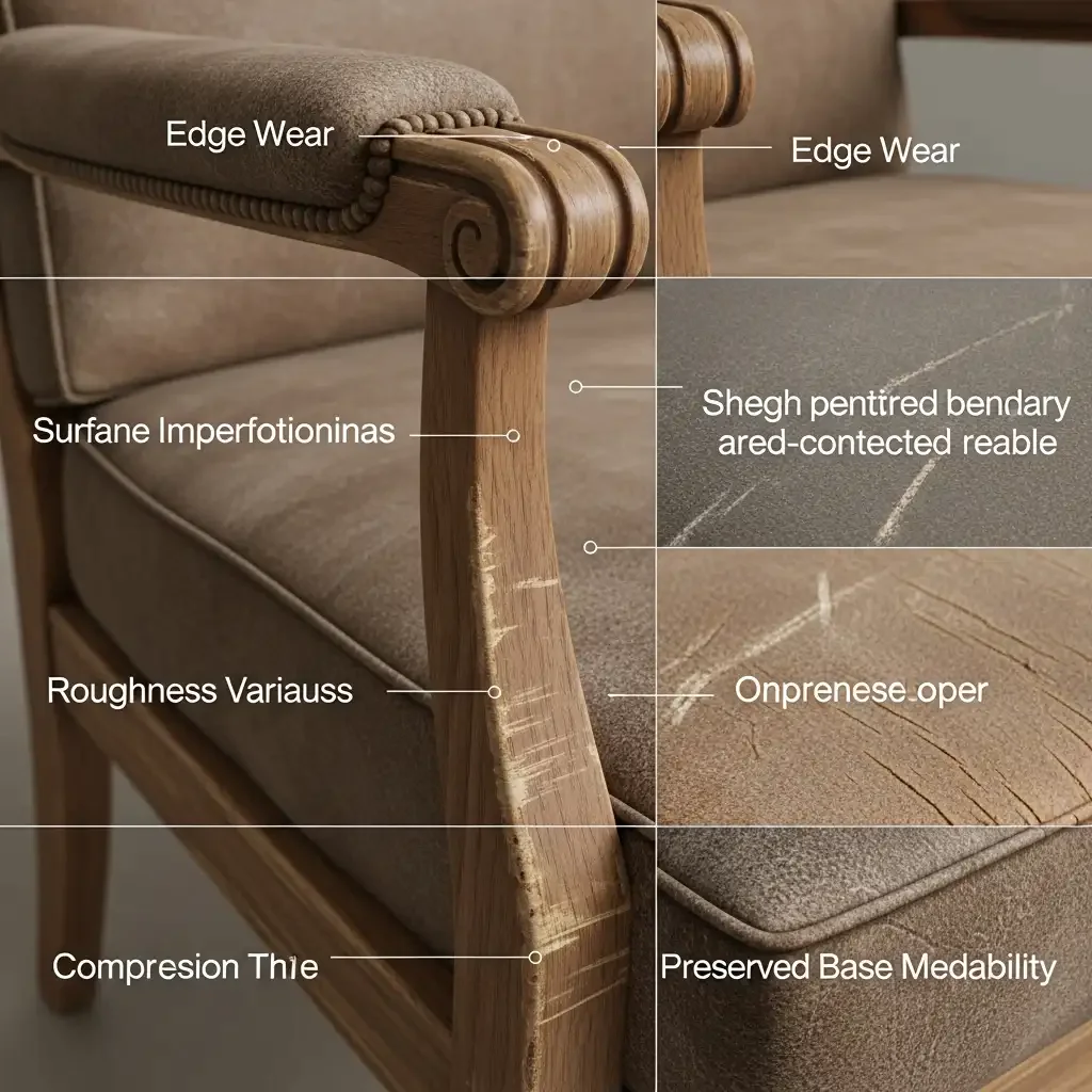 Check for the grain in wood, weave spacing & thread quality of fabric and that are there any pores, creases on leather and also get satisfied if there are any scuff marks. Distinguish between baseline surface textures and superficial anomalies such as scratches, dents or aging marks.